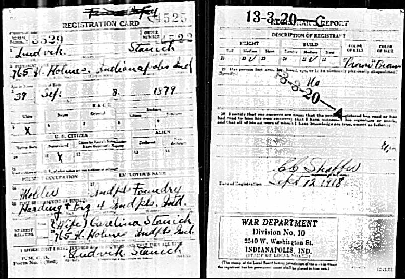 Ludvik Stanich World War I Registration Card